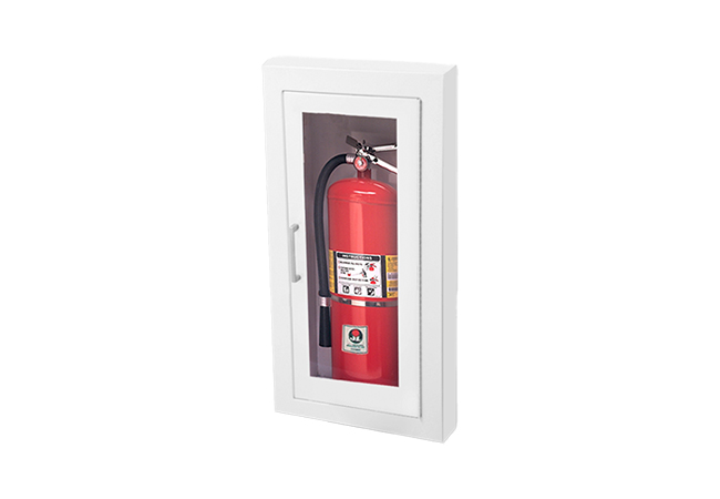 Function: Secure enclosure for 10 lb fire extinguishers, with visibility and semi-flush mounting to protect the unit and allow easy access