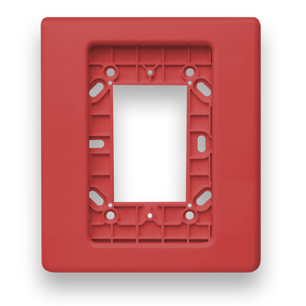Function: Provides a trim ring/backplate for flush or surface mounting of Genesis-series wall-mount notification devices, covering oversized or misaligned box openings.